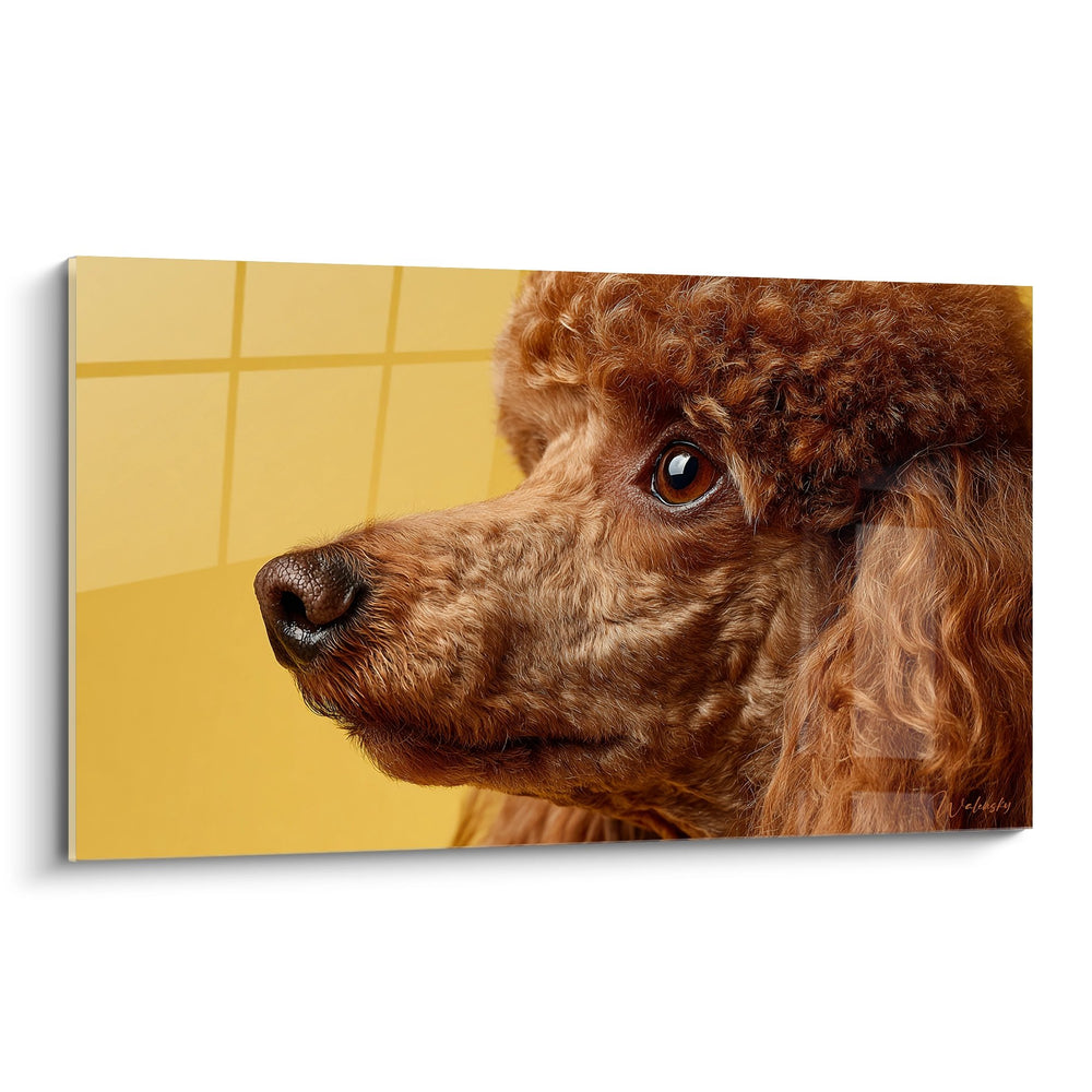 Tableau Portrait de Caniche Roux sur Fond Jaune - Regard Tendre - Edition Caniche