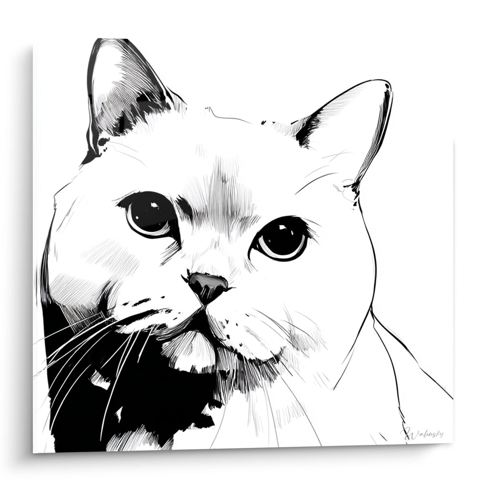 La finesse des lignes et la texture délicate du pelage sont mises en avant dans cette œuvre. Les détails comme les moustaches et les reflets dans les yeux sont soigneusement travaillés, ajoutant de la vie au chat. Cette attention portée aux détails crée un effet presque vivant.