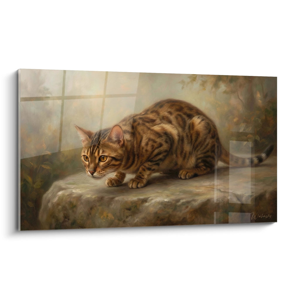 Plongez dans l'univers enchanteur de ce tableau, où le chat Bengal apparaît tel un chasseur silencieux. Cette œuvre exprime la beauté sauvage d'un félin, capturant à la fois la grâce et la puissance de cet animal fascinant.