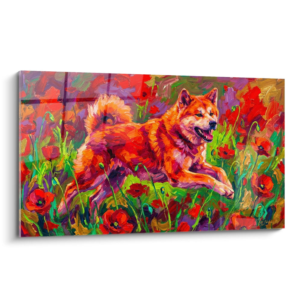 Tableau Akita Inu Expressionniste dans un Champ de Coquelicots - Éclat Floral - Edition Akita Inu