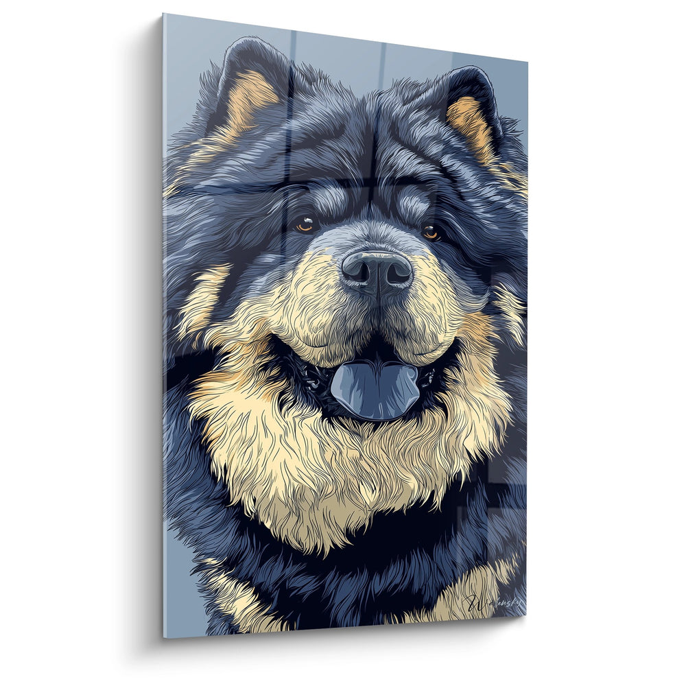 Tableau Chien aux Tons Bleus et Dorés - Portrait Expressif - Edition Chow Chow