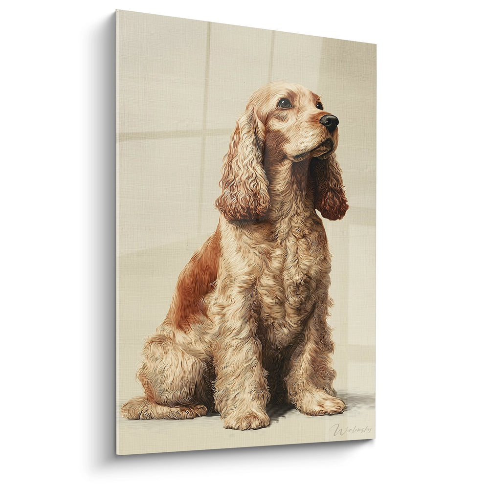 Tableau Chien Doré aux Oreilles Bouclées Assis en Portrait - Élégance Canine - Edition Cocker Americain