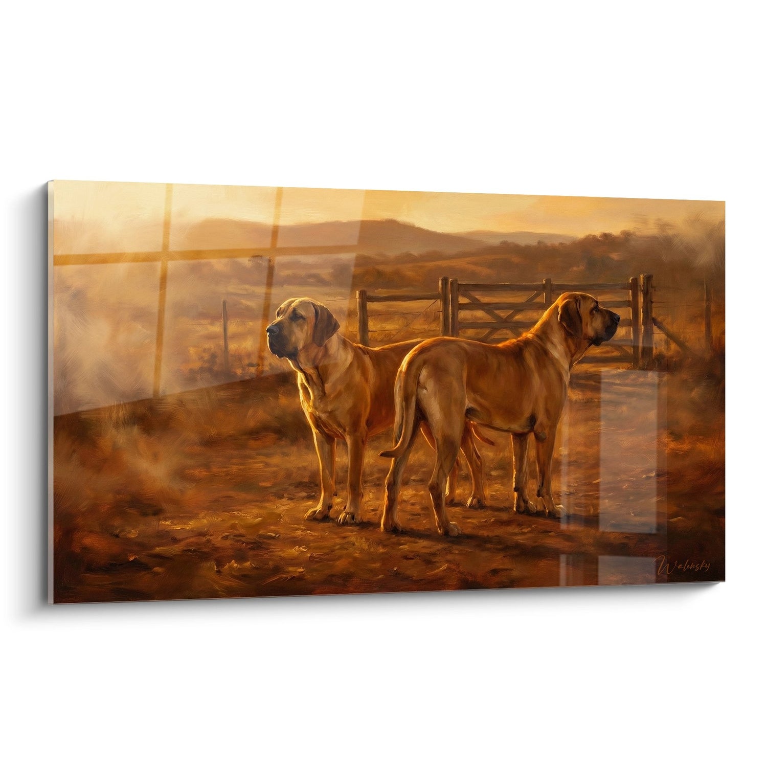 Tableau Deux Chiens dans la Lumière Dorée du Couchant - Gardiens du Soir - Edition Fila Brasileiro