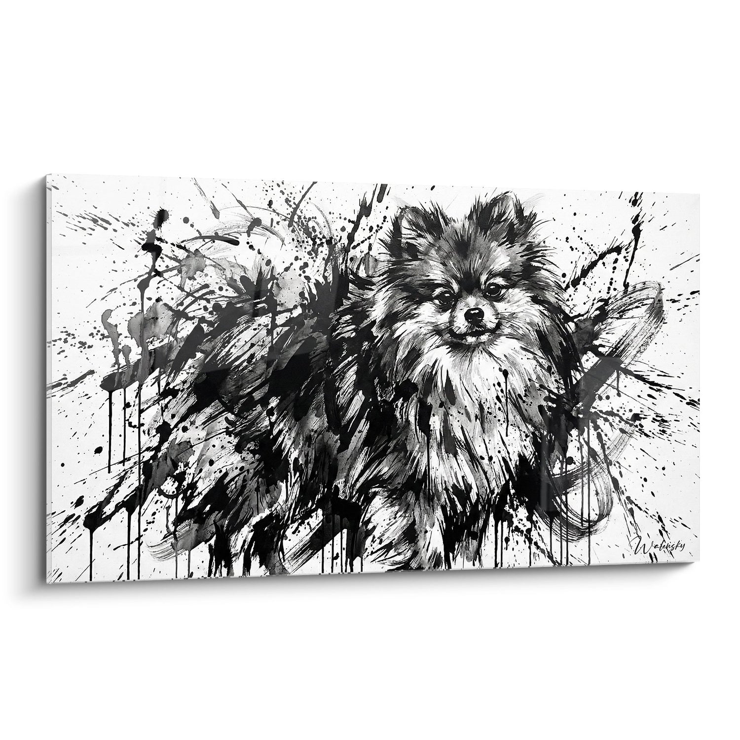 Tableau Spitz Poméranien Expressif Noir et Blanc - Art Animalier Éclaboussures - Edition Spitz Poméranien