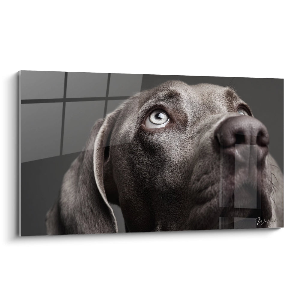 Tableau Chien Gris aux Yeux Bleus Regardant vers le Haut - Regard Intense - Edition Weimaraner