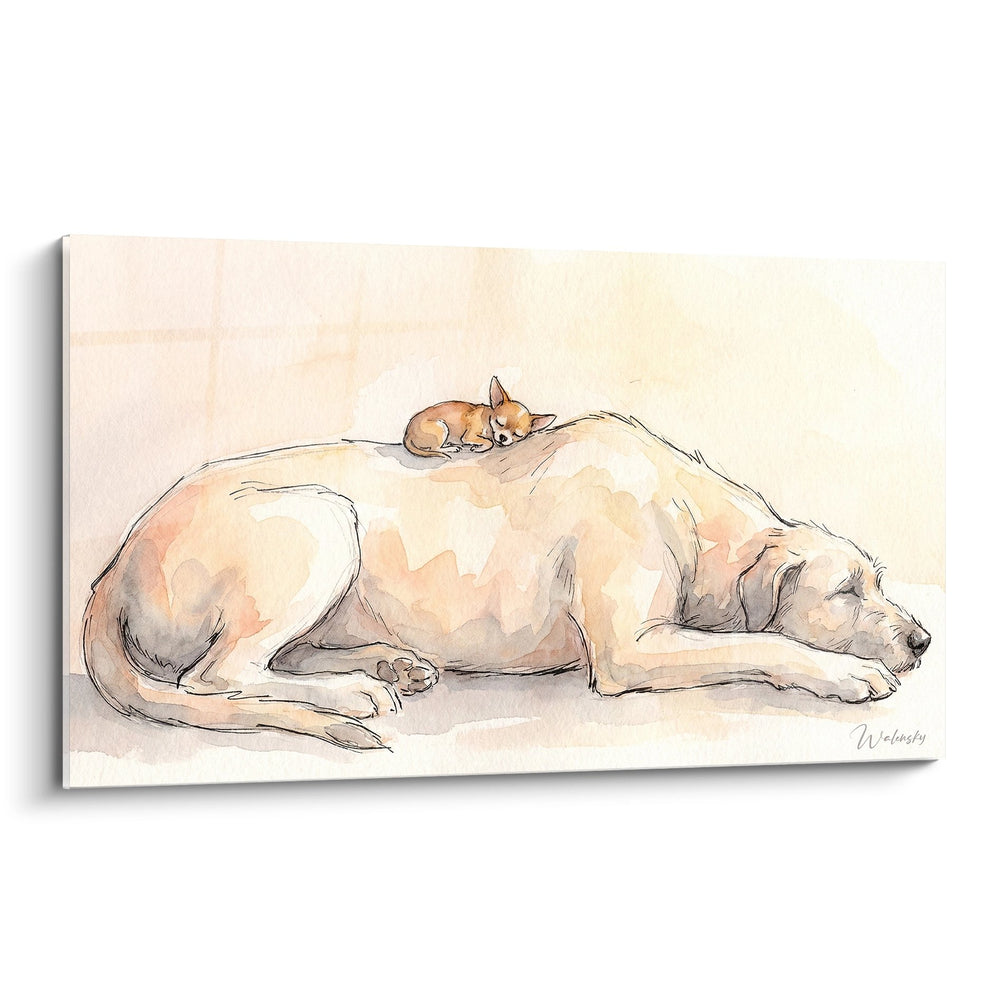Gemälde Irish Wolfhound Schlafend mit kleinem fauvefarben Chihuahua - Beruhigende Aquarell - Irish Wolfhound Edition