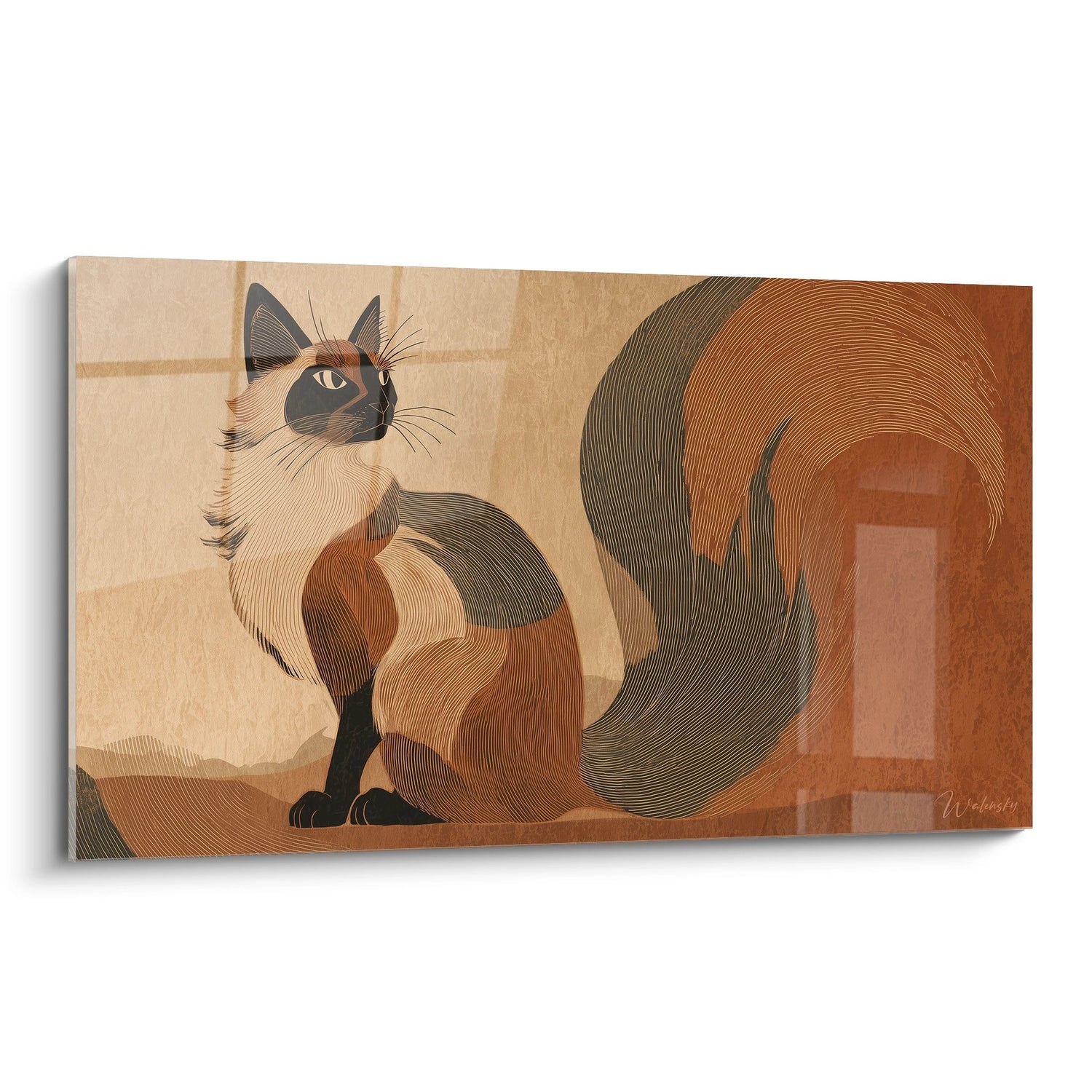 Bringen Sie ein einzigartiges Stück in Ihr Zuhause, das den Blick fesselt und die Seele berührt. Dieses Gemälde Somali-Katze Stilisiert vereint präzise geometrische Linien und sanfte Nuancen, um eine gleichzeitig raffinierte und warme Präsenz zu schaffen. Sie spüren die Silhouette der Katze, bevor Sie sie sehen: Wärme, Bewegung, Charakter.