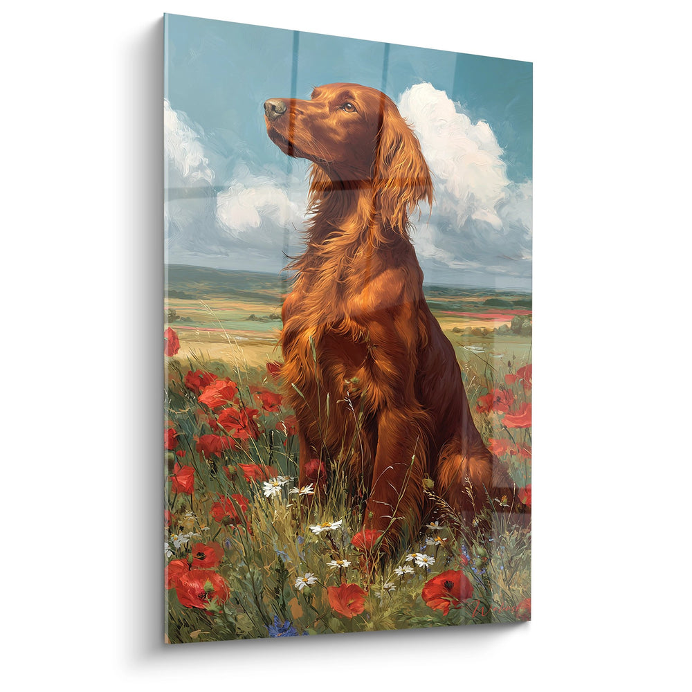 Gemälde Roter Irischer Setter in einem Mohnblumenfeld - Ländliche Betrachtung - Ausgabe Irischer Setter
