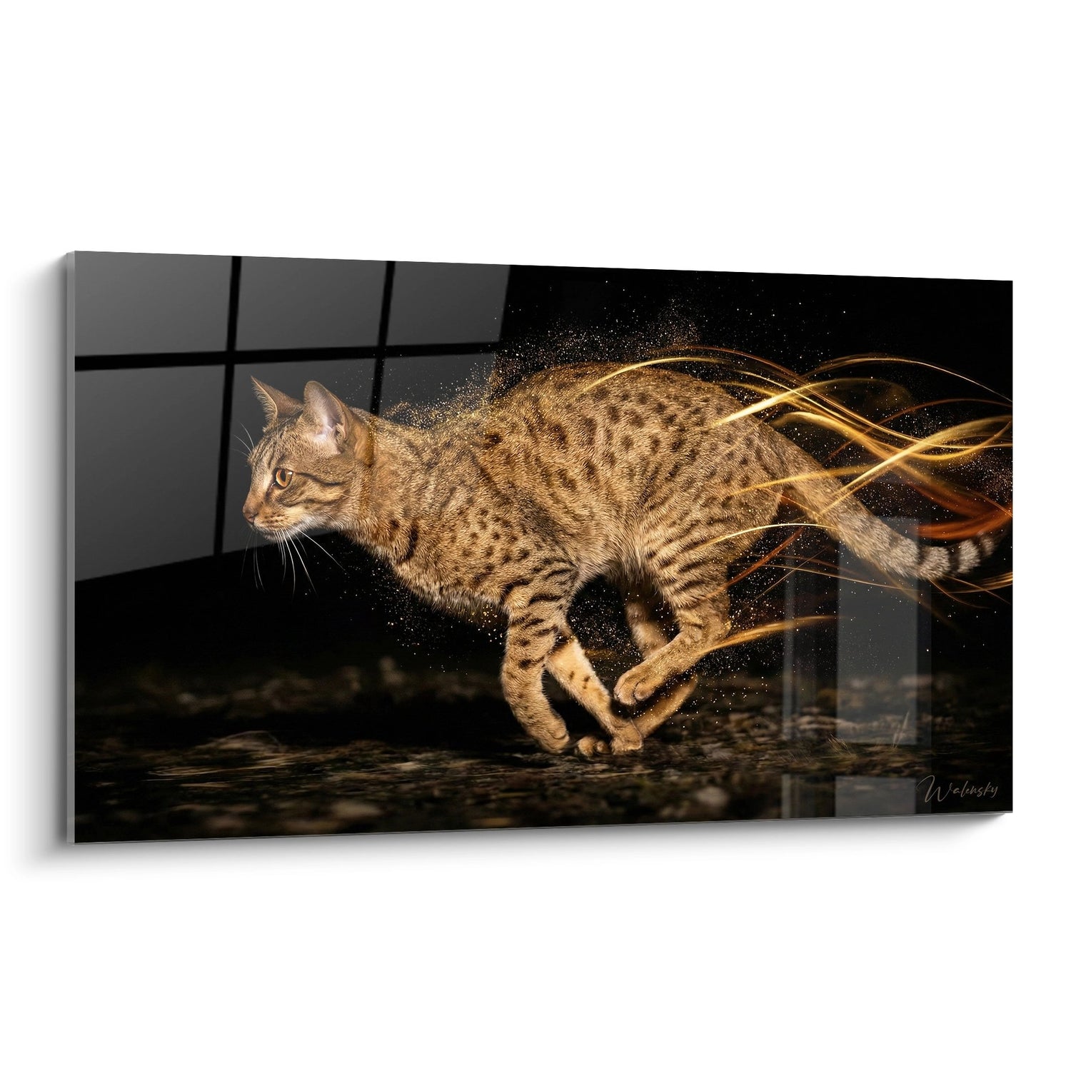 Tableau Chat Ocicat en mouvement - Énergie dorée - Edition chat Ocicat