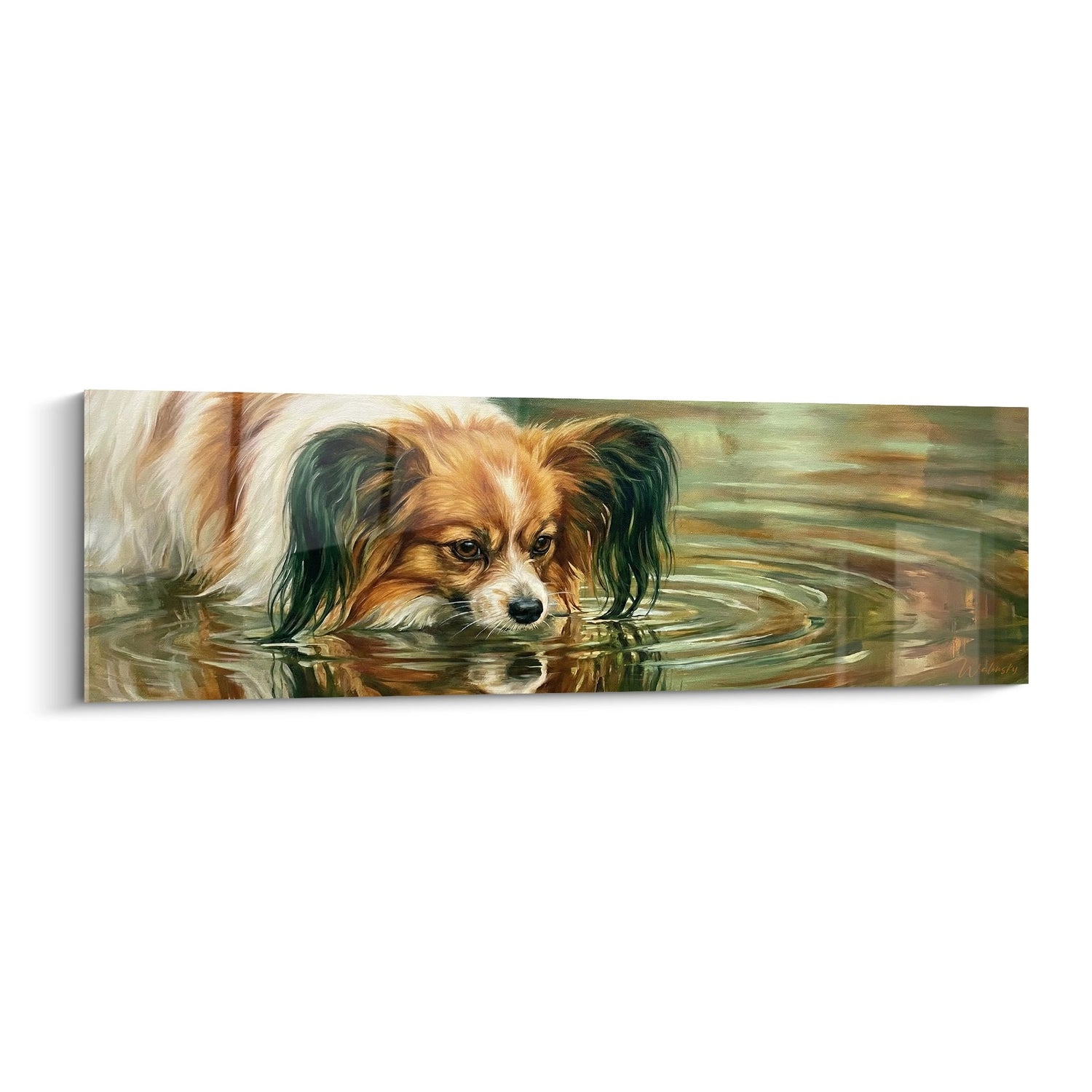 Tableau Chien Papillon dans l'Eau aux Reflets Dorés - Baignade Aquatique - Edition Chien Papillon