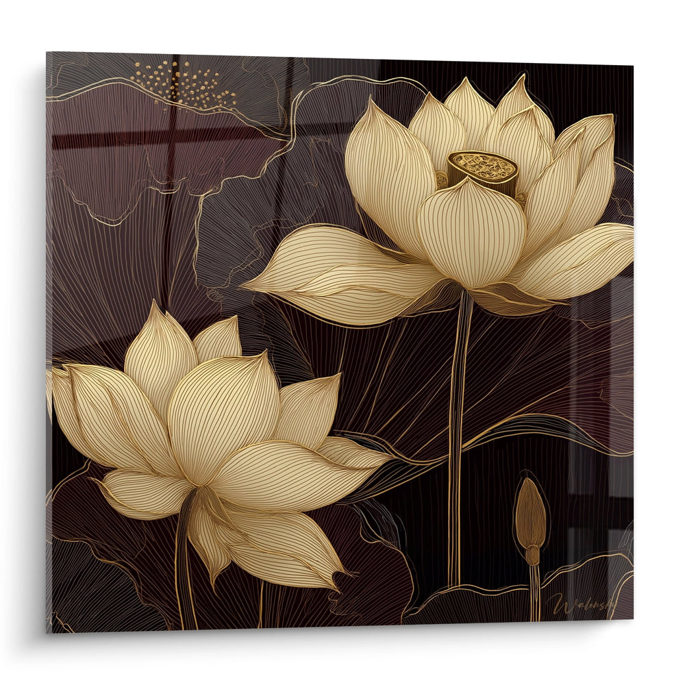 Tags: art deco, golden lotus, stylized flowers, wall decoration, elegance