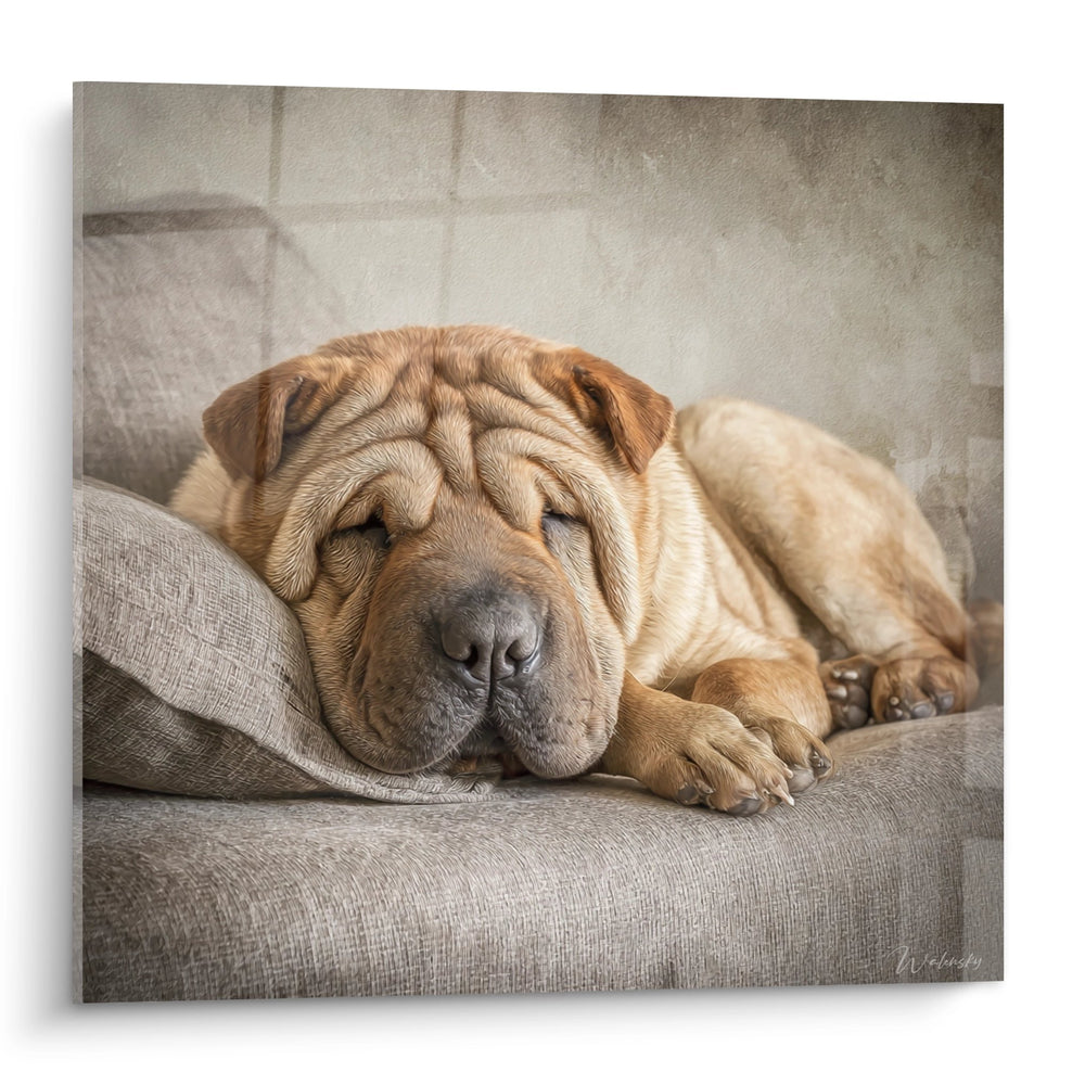 Sleeping Shar Pei Canvas with Tawny Tones on Beige Sofa - Canine Serenity - Shar Pei Edition