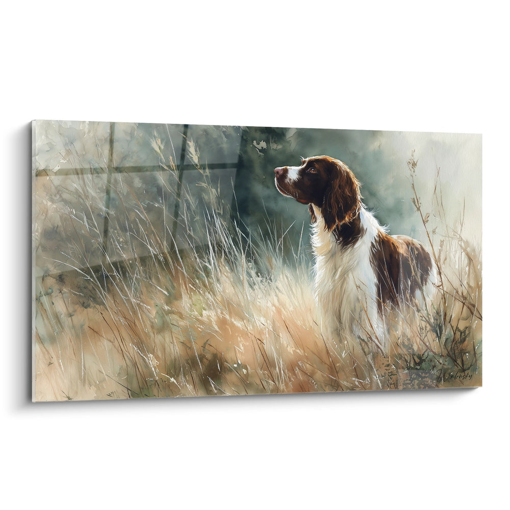 Brown and White Dog Painting in Tall Grass - Attentive Gaze - English Springer Edition