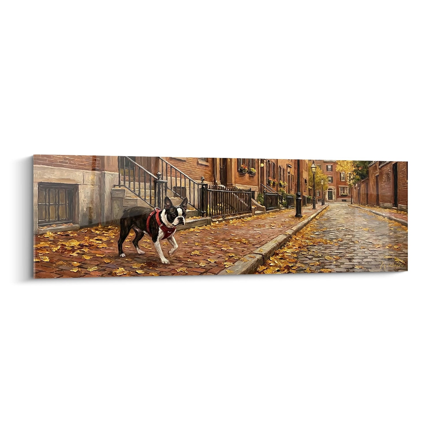 Quadro Boston Terrier su Strada Pavimentata d'Autunno - Passeggiata Urbana - Edizione Boston Terrier