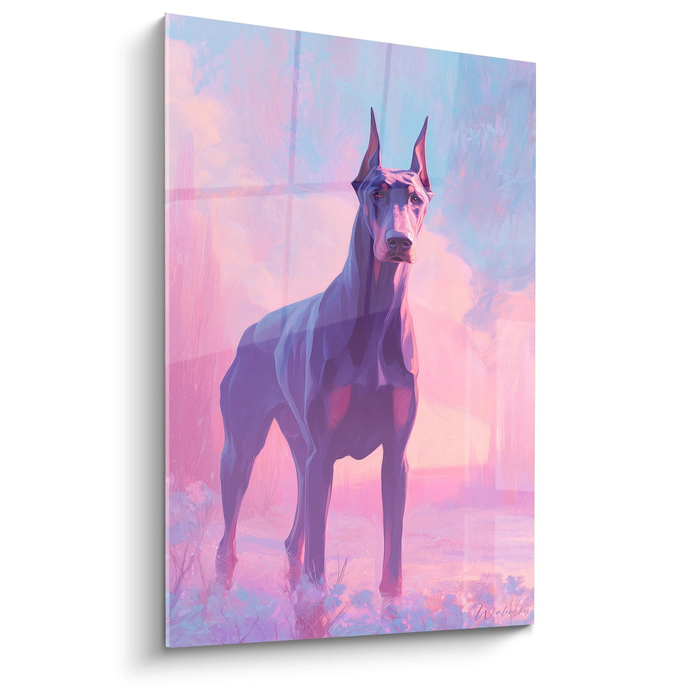 Quadro Cane Elegante nei Toni Viola e Rosa - Ritratto Artistico Contemporaneo - Edizione Doberman