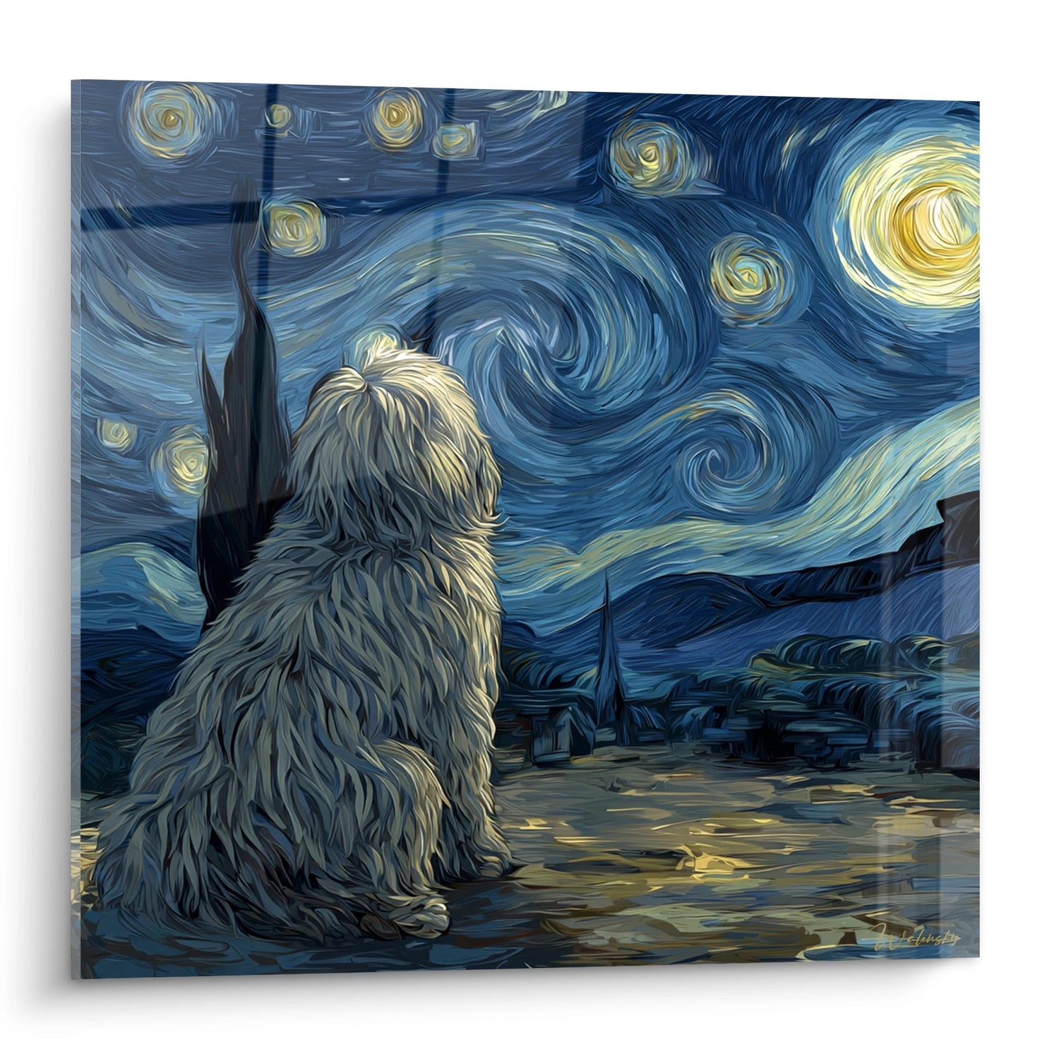 Quadro Cane Pastore Ungherese nella Notte Stellata - Fantasia Notturna - Edizione Komondor