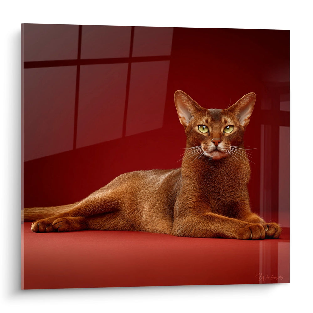 Tags: gatto-abissino, arte-felina, decorazione-rossa, ritratto-animale, eleganza-felina