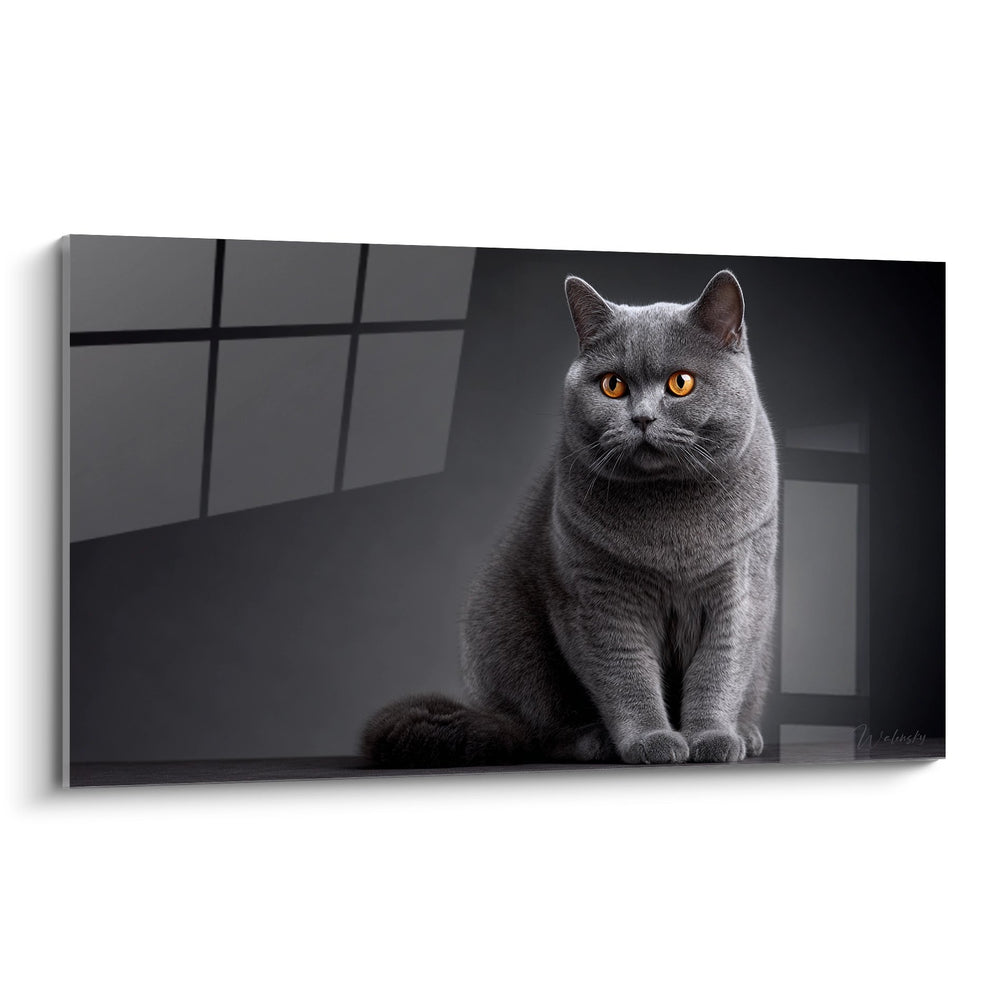 Offri alla tua casa una presenza allo stesso tempo nobile e accogliente. Questo Quadro rappresenta un British Shorthair grigio con uno sguardo ambra intenso, un pezzo di edizione pensato per valorizzare le tue pareti e creare un’atmosfera raffinata e rilassante.