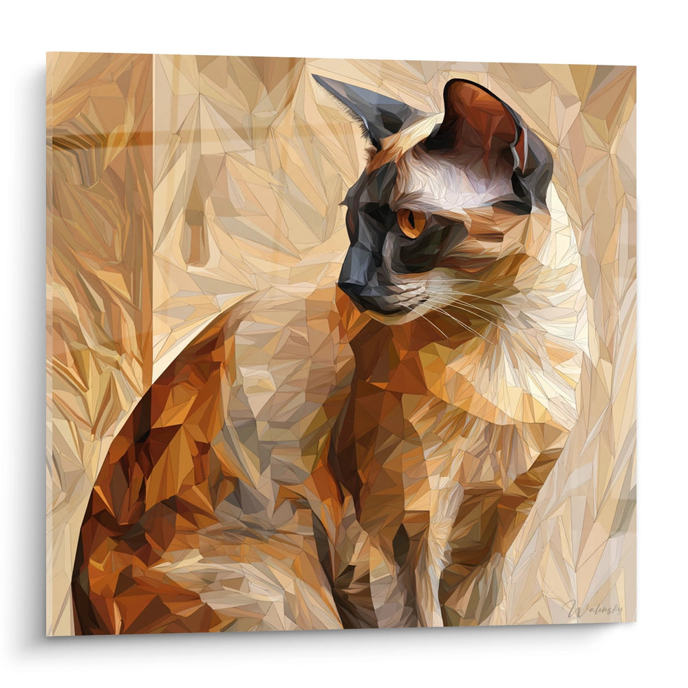 Immagina la superficie liscia sotto le dita, le tonalità calde e profonde che sembrano cambiare a seconda dell'ora del giorno, e la presenza dolce ma sicura dello sguardo del Sokoke. Questo quadro offre un'esperienza visiva quasi tattile: i contorni geometrici disegnano un'eleganza moderna, mentre la palette sottile porta calore e carattere alla stanza.
