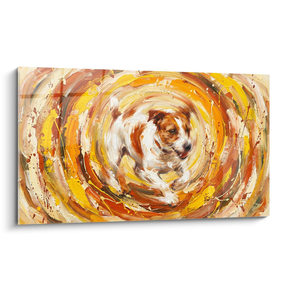 Quadro Vortice Dinamico Toni Ocra e Arancio - Movimento Canino Espressivo - Edizione Jack Russell Terrier
