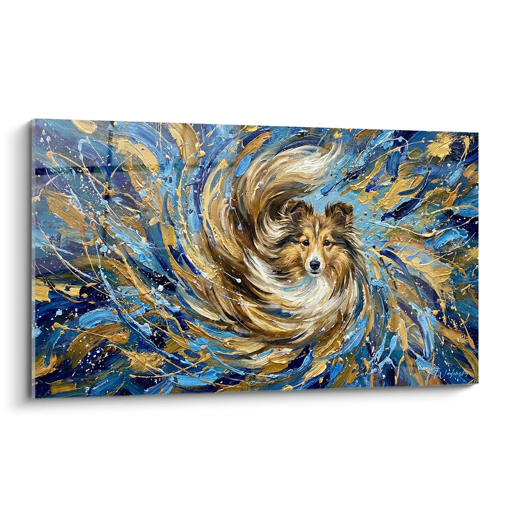 Salon Quadro Pastore delle Shetland Turbine Dorato e Blu - Energia Cosmica - Edizione Pastore delle Shetland