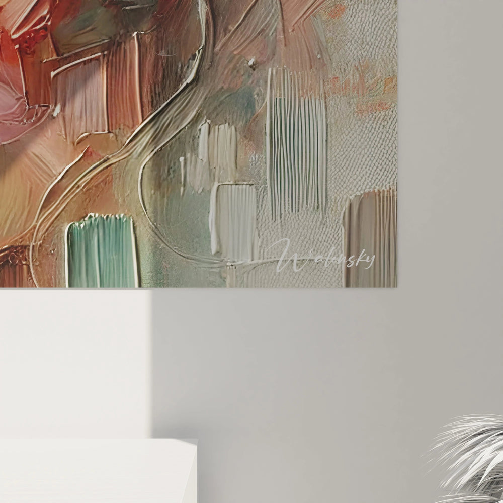 Ce visage abstrait évoque bien plus qu’une simple image : il raconte une histoire, celle des émotions enfouies, des regards croisés et des souvenirs flous qui nous touchent sans que l’on puisse toujours les nommer. Sa texture riche vous invite à ressentir la douceur et la complexité des sentiments humains, tandis que les traits, volontairement imprécis, laissent place à votre propre interprétation. Chaque fois que vous poserez les yeux sur ce tableau, vous découvrirez une nouvelle nuance, une sensation différente, comme si cet être semblait vivant et en mouvement.