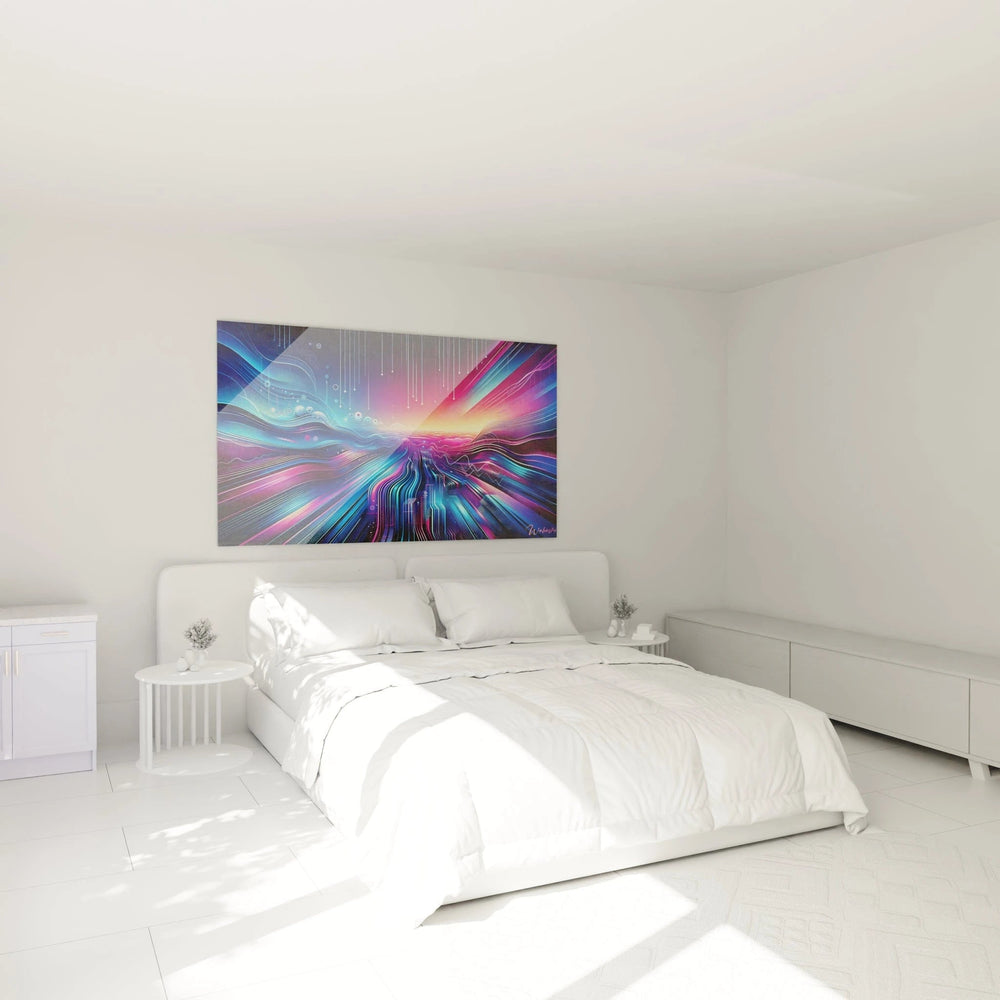 Imaginez un instant un horizon économique et vibrant, où l'énergie du futur se mêle à la poésie des couleurs. Le Tableau Aurore Cybernétique - Édition Abstrait incarne cette vision unique, transformant votre espace en un sanctuaire de lumière et de dynamisme.