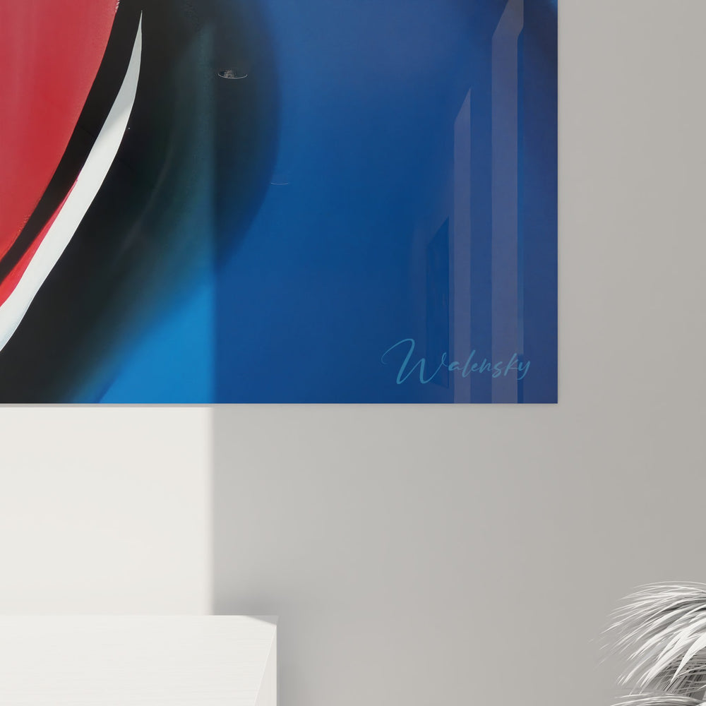 Cette composition abstraite géométrique s'inspire des grands maîtres de l'abstraction comme Kandinsky et Mondrian, tout en proposant une approche contemporaine unique. L'utilisation des couleurs primaires rappelle le mouvement De Stijl, tandis que les formes organiques évoquent l'art biomorphe de Miró. Cette décoration murale moderne s'intègre parfaitement dans les intérieurs contemporains et minimalistes, apportant dynamisme et sophistication à tout espace de vie.