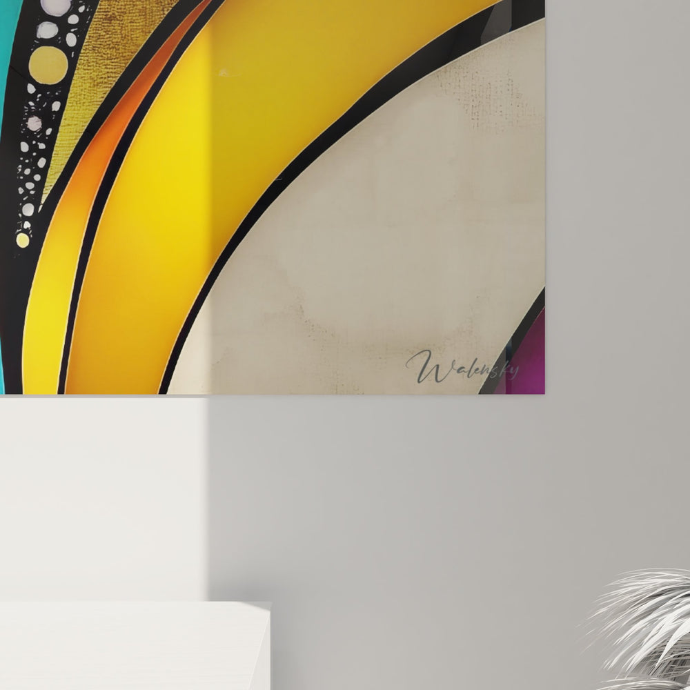 Imaginé pour s'harmoniser avec les espaces modernes tout en ajoutant une touche d'élégance, ce tableau évoque l'éclat des vitraux d'église, baignés de lumière et de couleurs. Chaque teinte vibrante semble danser et interacte avec le soleil, créant des reflets enchanteurs qui changent selon l'heure de la journée.