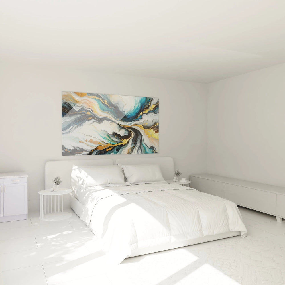 En intégrant ce tableau à votre intérieur, vous invitez une sensation de fluidité et d’harmonie. Les nuances chaudes et froides dialoguent, créant un contraste dynamique qui apaise et énergise à la fois. Il s’impose naturellement comme un élément central capable de transformer un salon, une salle à manger ou un bureau en un véritable espace de bien-être et d’inspiration.