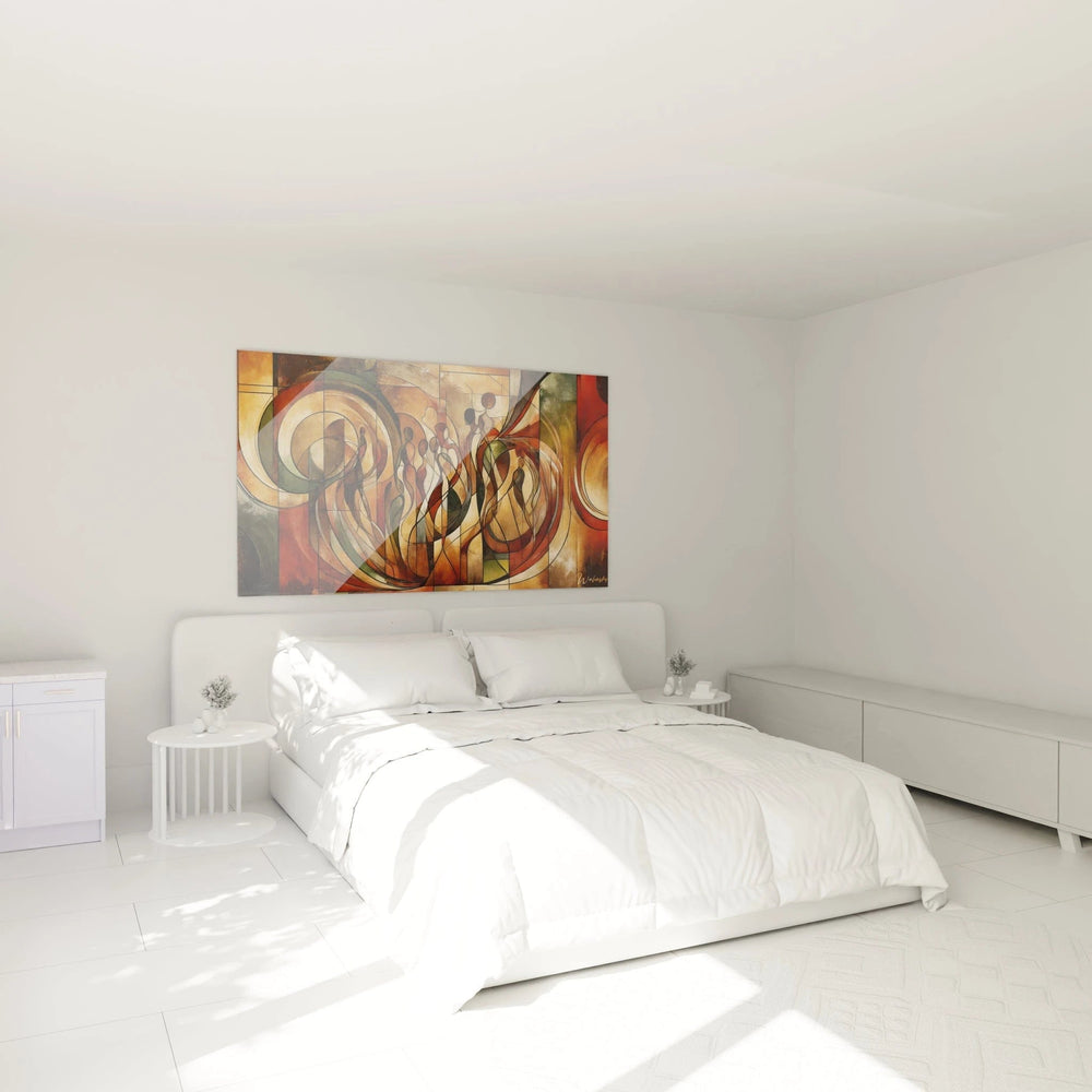 Imaginez une œuvre qui capture la grâce d’une danse invisible, celle des silhouettes qui s’entrelacent dans un ballet de formes et de couleurs chaleureuses. Le Tableau Danse des Silhouettes - Edition Cubisme Abstrait transcende la simple décoration pour devenir une expérience sensorielle unique, mêlant mouvement et connexions humaines sublimées par un style cubiste innovant.