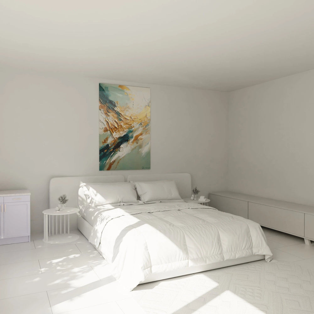 Associez ce tableau avec des éléments naturels comme le bois clair ou les plantes vertes pour renforcer la connexion avec la nature. L’or de l’œuvre s’accorde parfaitement avec des accessoires métalliques raffinés ou des matières nobles, apportant une touche de sophistication intemporelle. Dans un décor minimaliste, cette pièce rayonne tout en restant discrète, incarnant le luxe subtil et l’élégance pure.