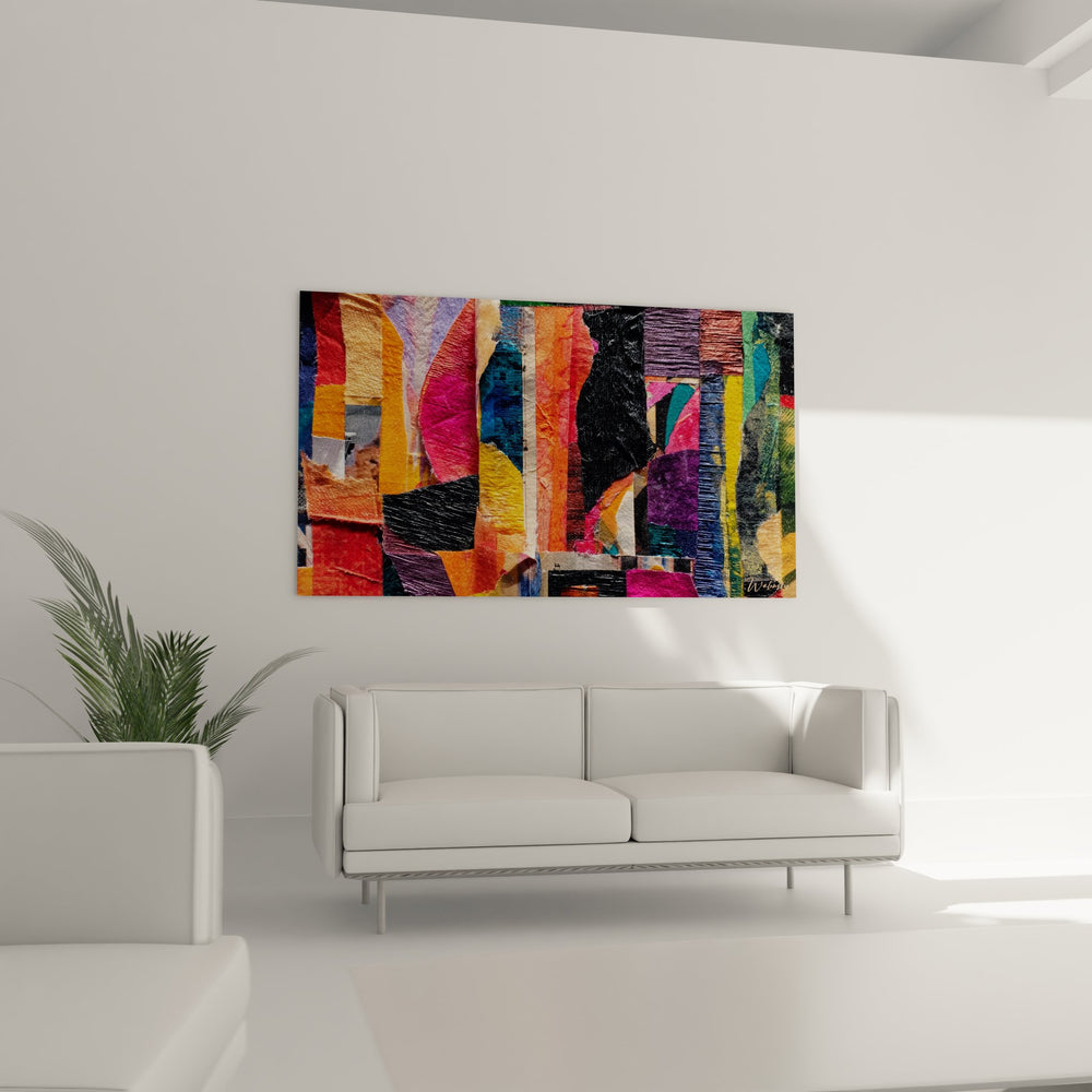 Tags : tableau abstrait, collage artistique, art moderne, décoration murale, neurones, multicolore, contemporain
