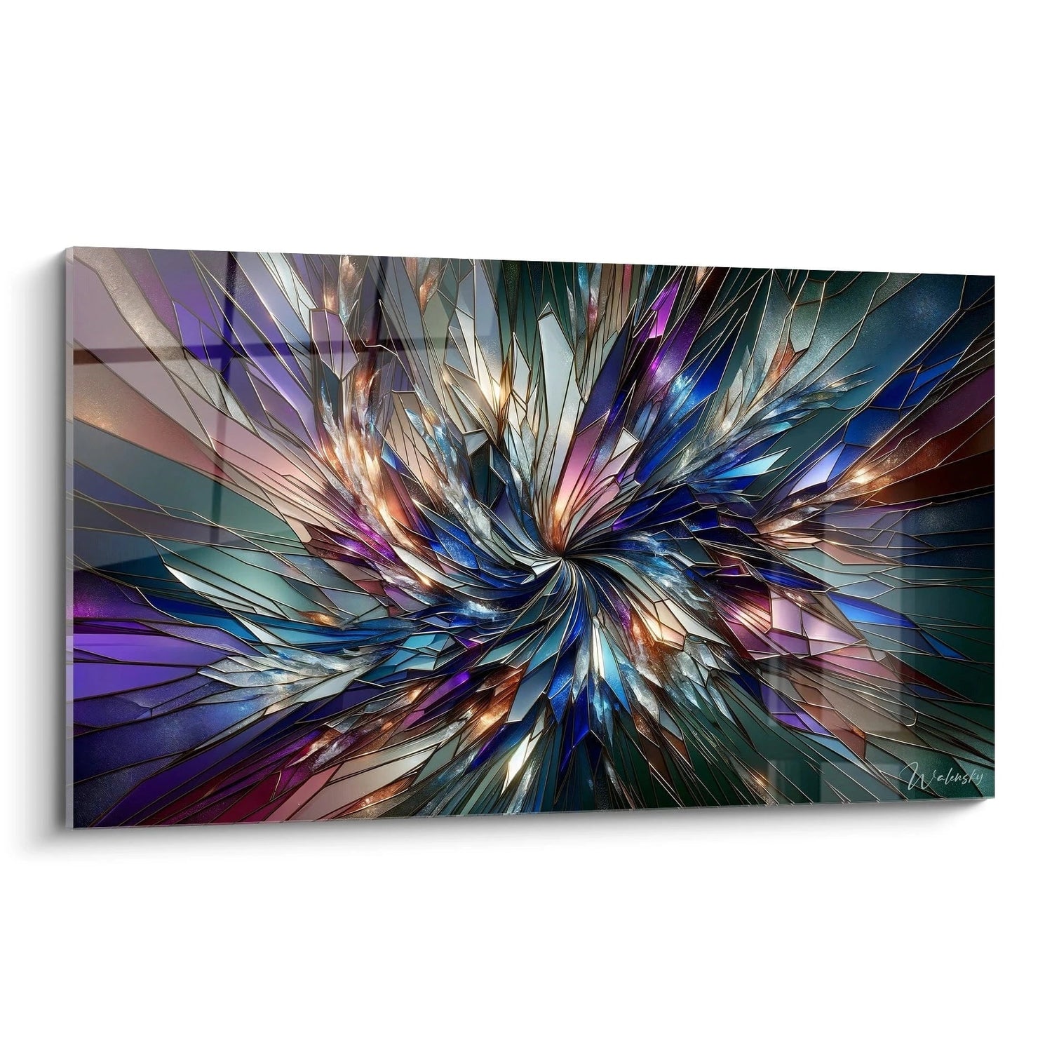 Ce tableau unique révèle l’instant où la matière semble se métamorphoser, mêlant rigueur géométrique et fluidité lumineuse. Les formes fractales se déploient telles des éclats dansants qui racontent l’histoire fascinante de la lumière se reflétant sur des surfaces cristallines. Chaque détail invite votre regard à explorer les profondeurs d’un univers où la complexité rencontre la beauté brute.