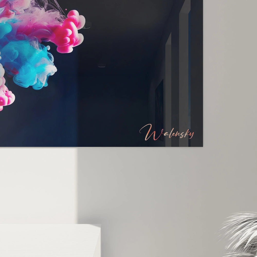 Imaginez l’explosion silencieuse des pigments flottant sous la surface d’une eau calme, une rencontre mystérieuse entre lumière et mouvement. Chaque nuance de rose, bleu et orange évoque l’énergie, la passion et la joie qui s’emmêlent comme des courants secrets. Ce tableau ne se contente pas d’habiller un mur : il invite à une véritable expérience sensorielle où vous ressentez la montée d’une créativité vive, presque palpable.