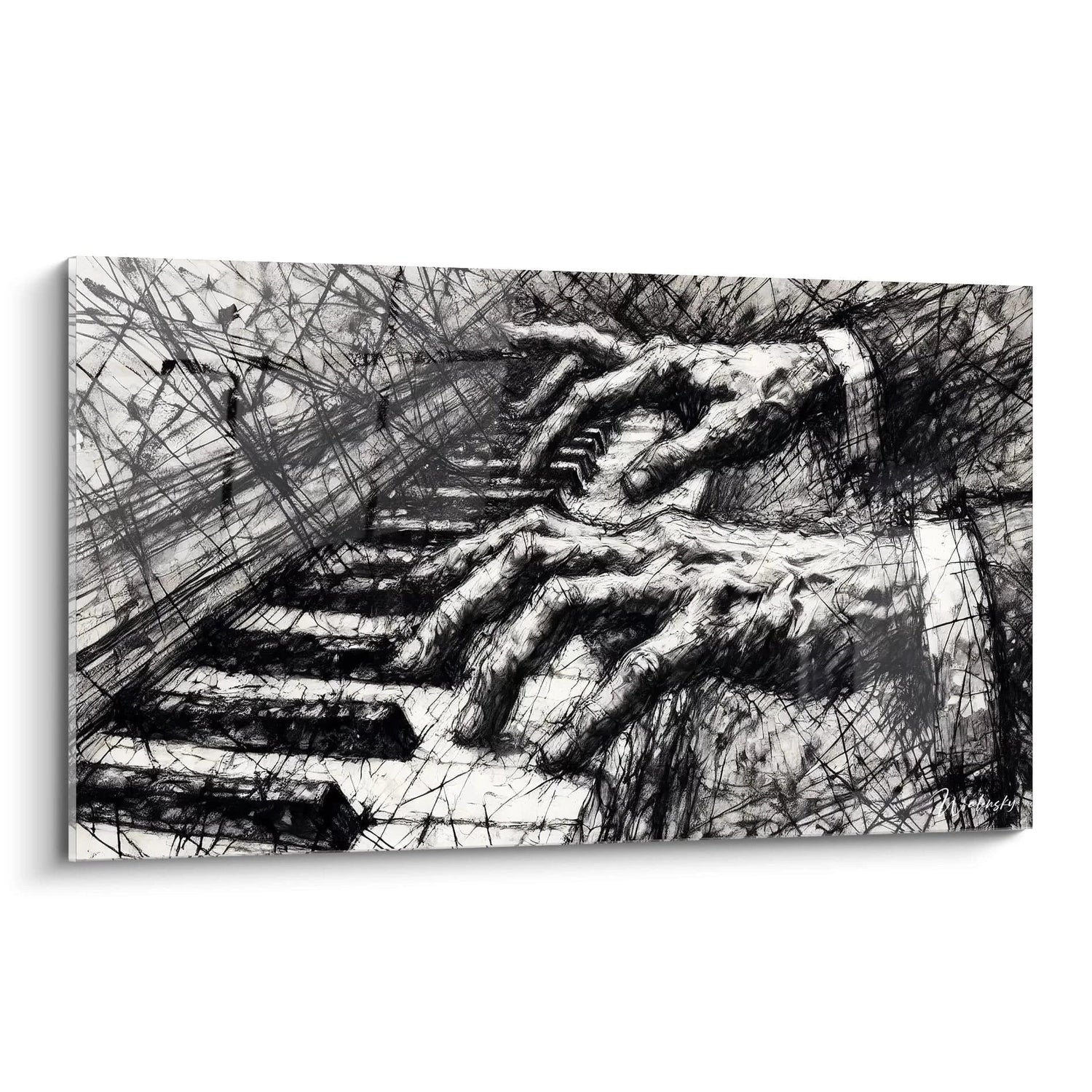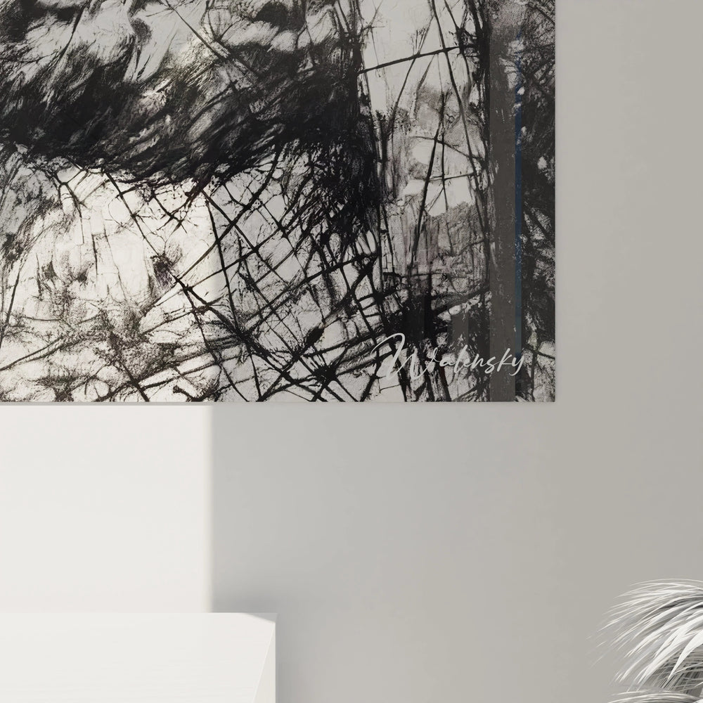 Imaginez lâinstant fugace oĂč chaque note sâenvole, portĂ© par des mouvements prĂ©cis et spontanĂ©s. Ce tableau vous plonge au cĆur de cette danse, grĂące Ă ses traits noirs puissants mĂȘlĂ©s Ă des nuances de gris et de blanc qui apportent une profondeur mystĂ©rieuse. Les lignes entrelacĂ©es, parfois brutales, parfois dĂ©licates, reflĂštent cette dynamique exaltante, rendant visible lâinvisible : la musique en cours de crĂ©ation.