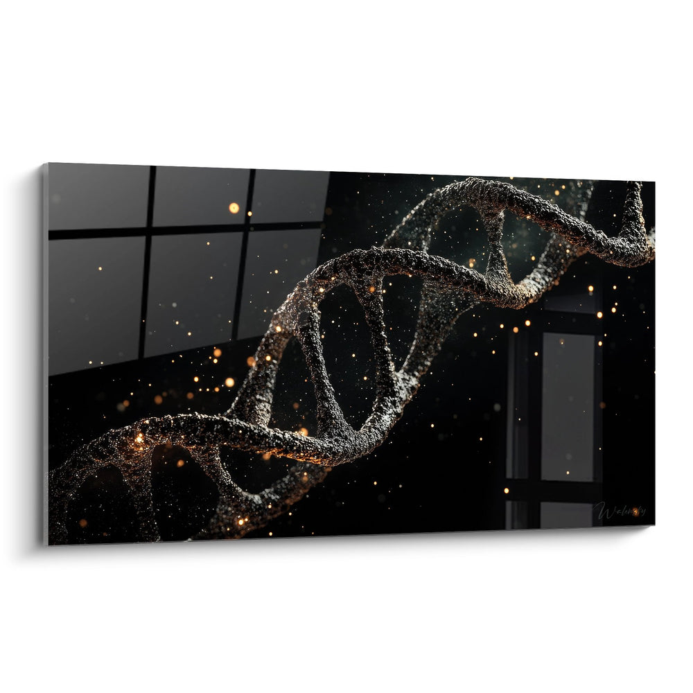 Tags : tableau ADN, double hélice dorée, art génétique, décoration scientifique, biologie moléculaire