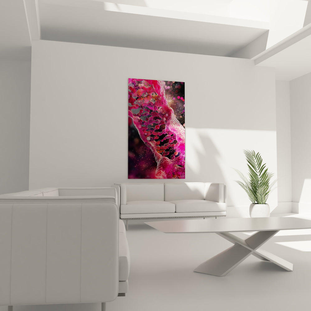 Tableau ADN rose lumineux - Hélice génétique abstraite - édition adn