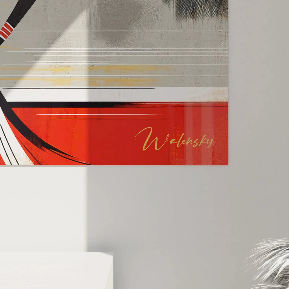 Chaque détail de ce tableau vous transporte grâce à une palette raffinée où dominent le rouge profond, le noir intense et des touches dorées précieuses. Le mariage de ces teintes évoque la chaleur des savanes africaines et la lumière douce du soleil couchant. Les formes géométriques, fluides et stylisées, apportent un équilibre parfait entre abstraction et sophistication, tandis que les jeux de transparence et de textures créent une sensation de légèreté et de mouvement, comme une robe qui tournoie au vent.