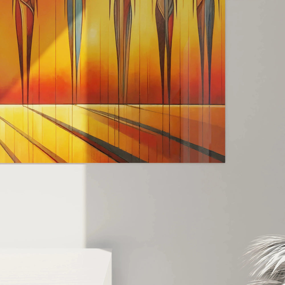 Imaginez la douceur chaleureuse d’un coucher de soleil africain, enveloppant votre intérieur d’une lueur dorée et apaisante. Les silhouettes élancées, à la fois abstraites et pleines de vie, incarnent l'unité et la diversité. Elles dessinent une chorégraphie silencieuse, symbole d’une communauté connectée et vivante. Les cercles lumineux qui couronnent cette danse sont comme des soleils intérieurs, irradiant énergie et inspiration.