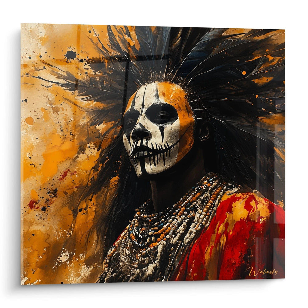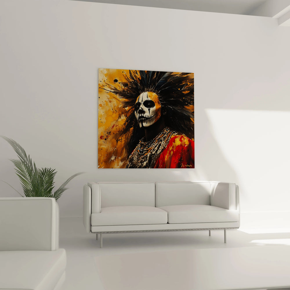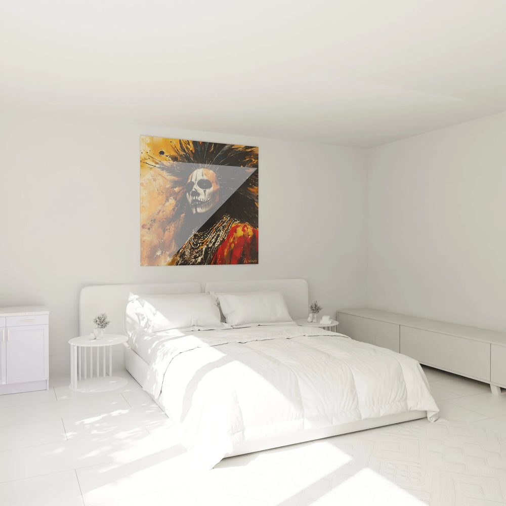 Cette harmonie de couleurs complémentaires crée un impact émotionnel fort, évoquant à la fois la chaleur du feu et l'obscurité mystérieuse. L'art mural crâne vibrant tire sa force de ces contrastes chromatiques qui amplifient l'expression dramatique de l'ensemble.