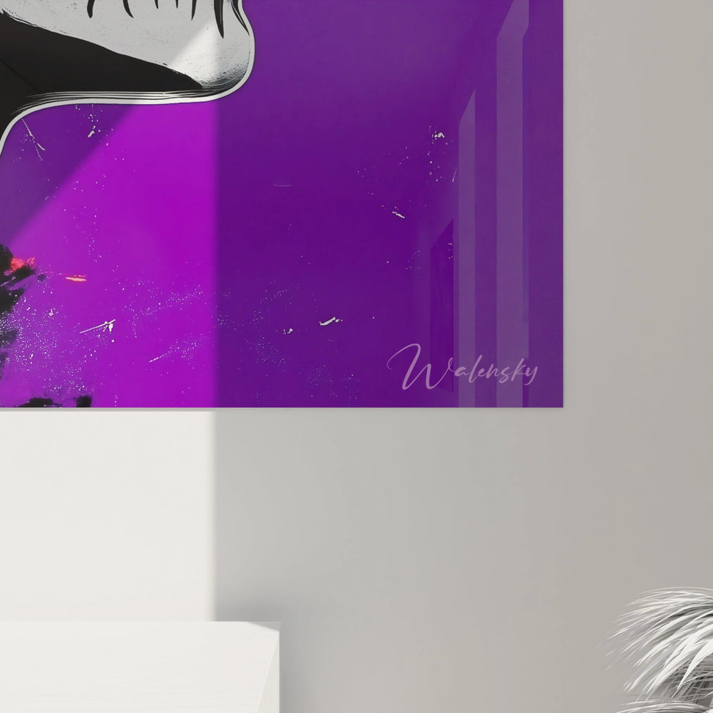 Ce tableau crâne présente une œuvre d'art contemporain saisissante qui captive immédiatement le regard par son contraste dramatique entre le violet dominant et les éclats orange vifs. L'artiste a créé une composition où le crâne blanc se détache puissamment sur un fond violet profond, créant un impact visuel immédiat. Cette décoration murale crâne contemporain révèle des détails complexes avec des éclaboussures de couleurs dynamiques qui donnent vie à ce symbole intemporel. Les touches d'orange et de rouge apportent une énergie créative contrastante, transformant ce tableau crâne violet orange en une pièce artistique moderne remarquable.