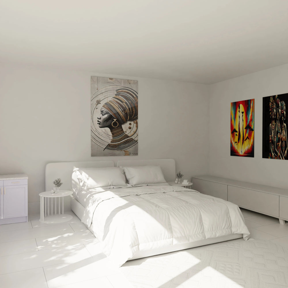 Imaginez une œuvre capable d’apporter à votre intérieur une atmosphère à la fois apaisante et vibrante d’énergie. Le Tableau Portrait de Sagesse - Édition Signature transcende la simple décoration pour raconter une histoire puissante, celle de la féminité africaine dans toute sa splendeur. Chaque regard posé sur ce profil féminin vous transporte au cœur d’une culture millénaire, où force et douceur s’entrelacent avec une élégance inégalée.