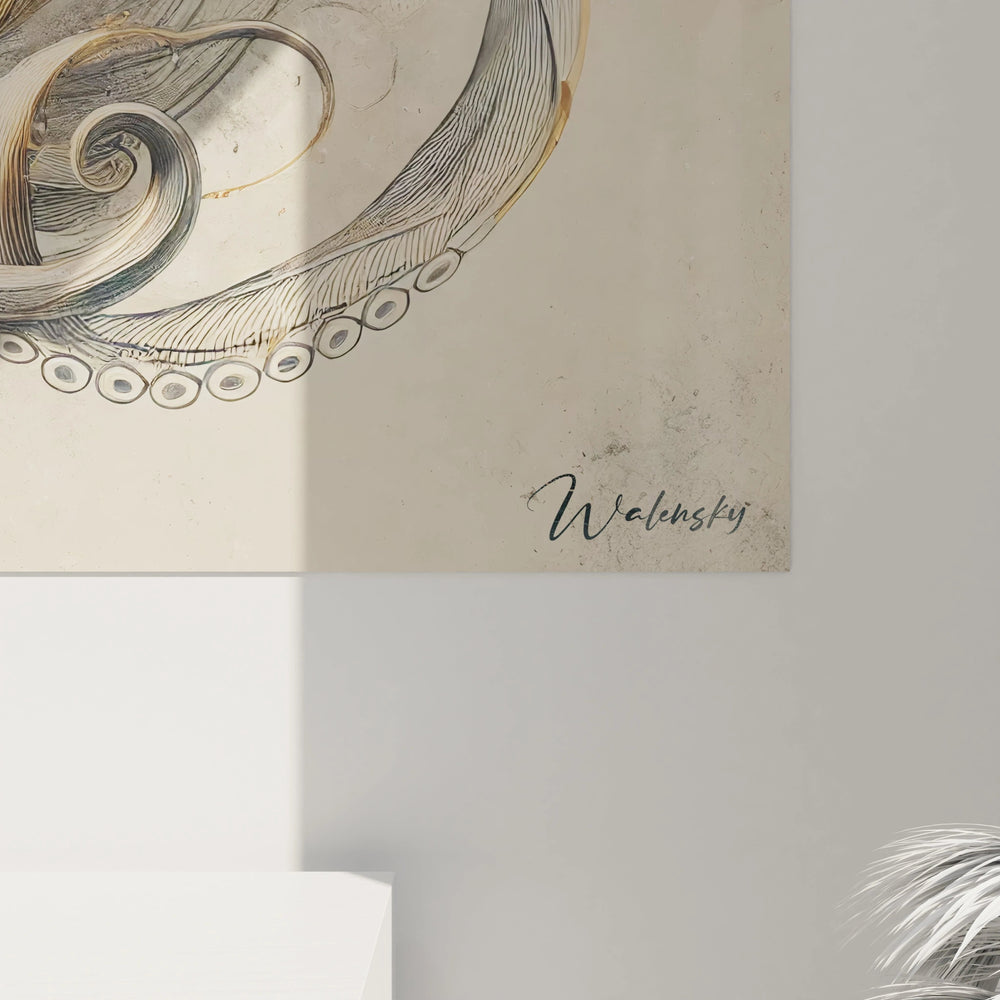 Imaginez un instant vous immerger dans les abysses mystérieuses de l’océan, là où règne un calme absolu et où la lumière effleure à peine les créatures légendaires qui y vivent. Le Tableau Ailes de la Mer - Édition Calamar Animaux vous transporte dans cet univers fascinant, révélant la beauté insaisissable du calamar géant, gardien des secrets sous-marins. Cette œuvre raffinée incarne une rencontre entre puissance et grâce, tout en enveloppant votre intérieur d’une atmosphère à la fois sereine et énigmatique.