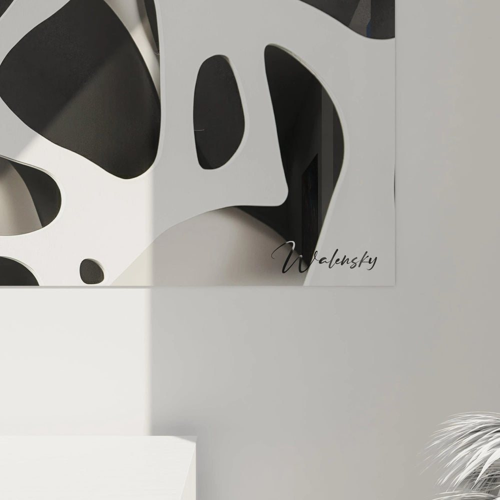 Chaque détail de ce tableau semble animé par un souffle naturel. Les alvéoles, comme des cellules organiques en suspension, créent un relief qui capte votre regard et invite à la contemplation. La texture douce et nuancée du noir profond contraste avec l’éclat immaculé du blanc, offrant une dualité qui évoque à la fois force et délicatesse. Vous ressentirez presque le frisson tactile sous vos doigts, même à distance.