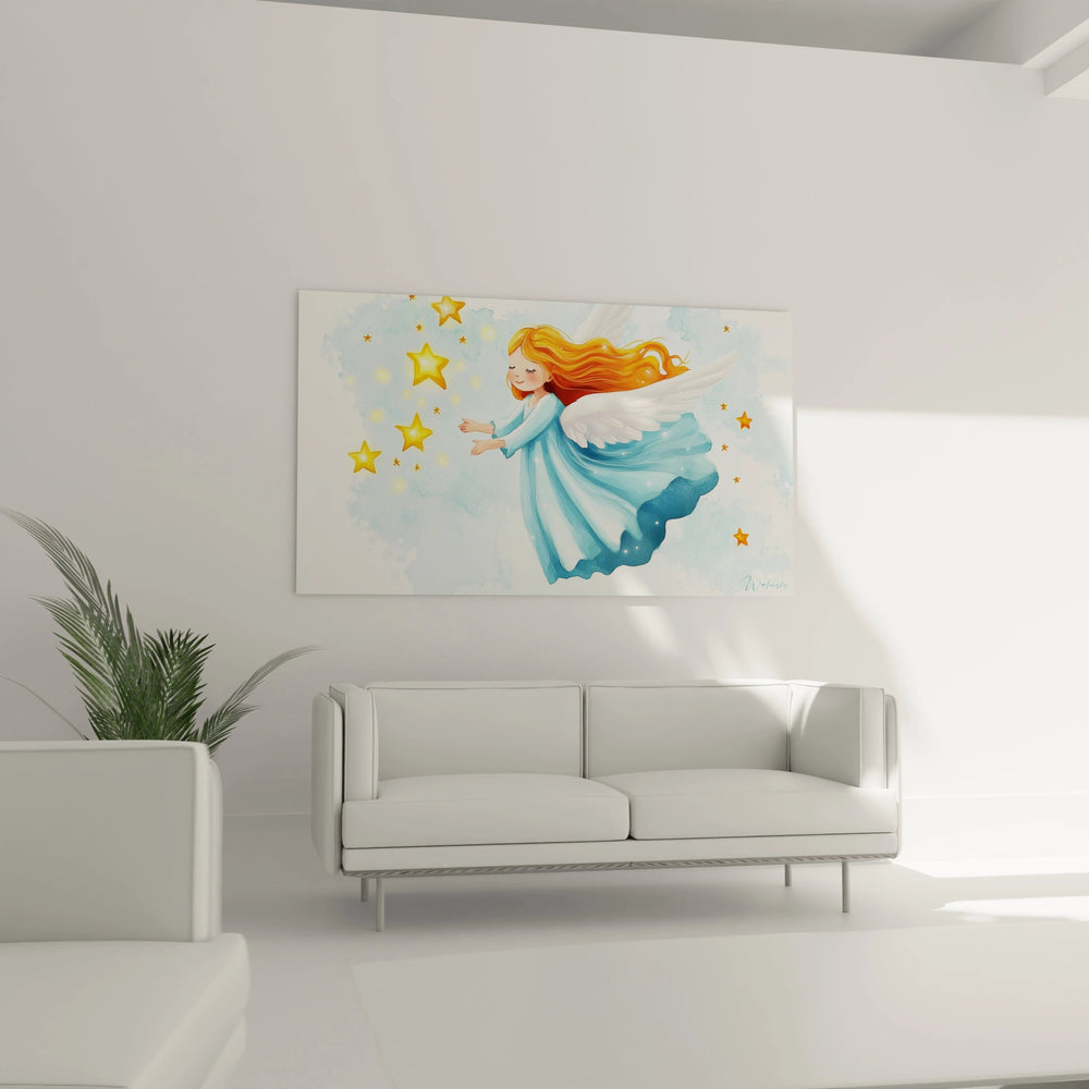 Le Tableau ange N°2 transforme votre espace, insufflant une ambiance d’émerveillement et de sérénité. Que ce soit dans une chambre, un salon paisible ou un coin dédié aux jeux, il crée un univers où chaque objet invite à la rêverie. La douce lumière des étoiles éclaire vos espaces et assure un sentiment profond de protection et de bien-être.