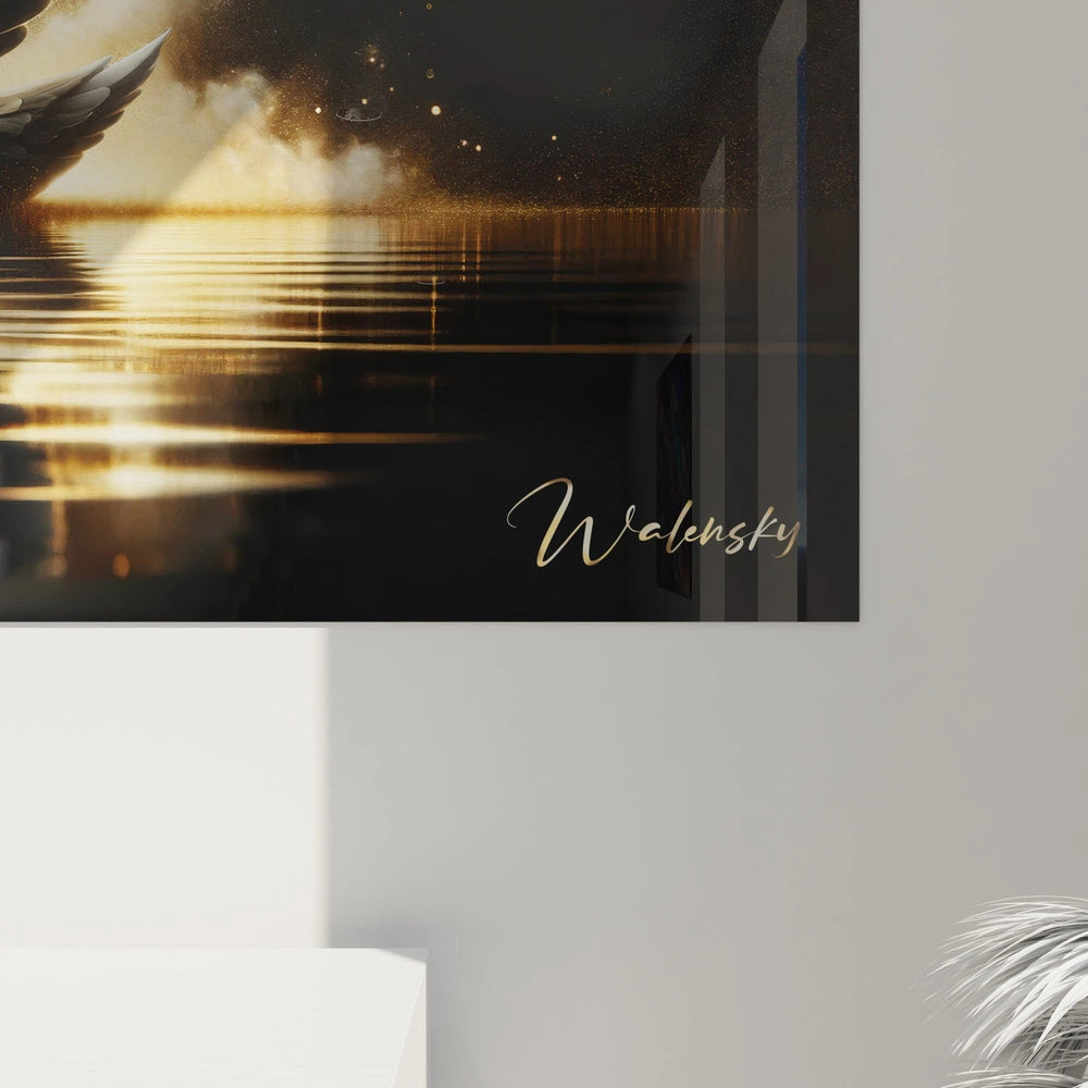 Offrez à votre intérieur une œuvre qui transcende le simple décor : le Tableau Cygne et Poussière d'Étoiles - Édition Signature vous plonge dans un univers où la grâce se mêle à la poésie cosmique. Imaginez un cygne solitaire, glissant avec majesté sur une eau profonde et mystérieuse, illuminé d’une aura dorée qui semble capturer la lumière même des étoiles lointaines.