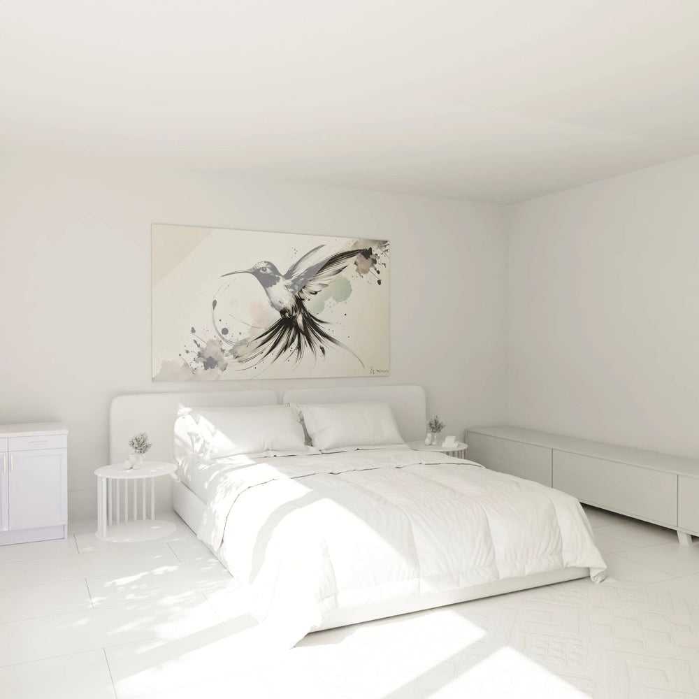 Offrez à votre intérieur une atmosphère unique avec ce Tableau Éclat Noir et Blanc - Édition Animaux, une création qui fusionne sobriété et émotion intense. Inspiré par la danse gracieuse du colibri, ce tableau capture la subtilité et la force d’un instant suspendu entre ombre et lumière.