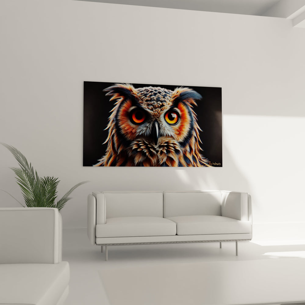 Ce tableau capte l’essence même du hibou, cet animal emblématique au regard perçant. Sa présence imposante et majestueuse illumine subtilement votre pièce, transformant votre espace en un sanctuaire de sérénité et de réflexion. En contemplant cette œuvre, vous sentez presque le doux bruissement des feuilles, l’air frais de la forêt au crépuscule et le calme mystique de la nuit qui s’installe.
