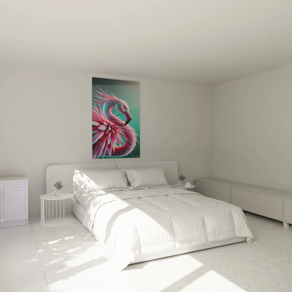 Laissez-vous séduire par le Tableau Portrait Flamboyant - Édition Animaux, conçu pour transformer vos espaces en havres d’élégance et de poésie. Cette œuvre somptueuse célèbre la grâce unique du flamand rose, capturant avec finesse l’harmonie entre la délicatesse naturelle et une énergie vibrante, enveloppée dans une atmosphère presque irréelle.